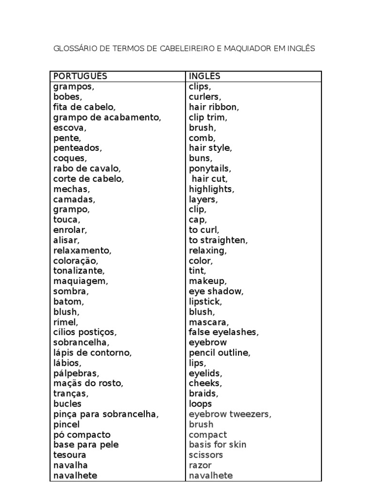 Glossário De Termos De Cabeleireiro E Maquiador Em Inglês | Pdf from id.scribd.com